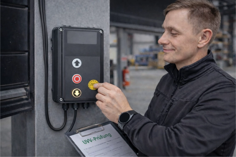 Jährliche UVV-Prüfung nach ASR A1.7 Wir prüfen Türen und Tore gemäß ASR A1.7. Unser Leistungsumfang umfasst Sichtprüfung, Funktionsprüfung, Dokumentation sowie notwendige Anpassungen oder Reparaturen, damit Ihre Anlagen sicher, zuverlässig und gesetzeskonform arbeiten. Wir sichern die Einhaltung aller relevanten Anforderungen der Arbeitsstättenregelung für Ihre Betriebsstätte. Kontaktieren Sie uns für eine verbindliche Prüfung Ihrer Tore.